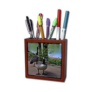 Product Description : Two Canadian Geese Tile Pen Holder is measuring 5w x 5h x 2d. Made from high quality solid mahogany wood with satin finish and one 4.25 commercial grade mirror gloss ceramic tile. Looks great on a desk or counter top with a full color custom imaged tile.