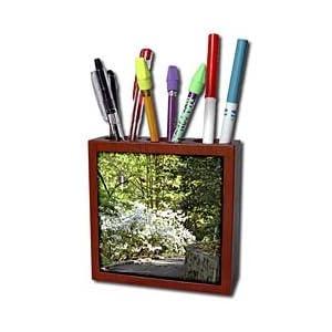 Product Description : A Path with white flowers and trees Tile Pen Holder is measuring 5w x 5h x 2d. Made from high quality solid mahogany wood with satin finish and one 4.25 commercial grade mirror gloss ceramic tile. Looks great on a desk or counter top with a full color custom imaged tile.