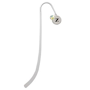 z 1/2" Disc Silver Plated Charm Bookmark with AB Crystal Swarovski Drop