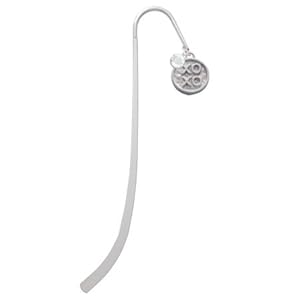XOXO Round Seal Silver Plated Charm Bookmark with Clear Crystal Swarovski Drop